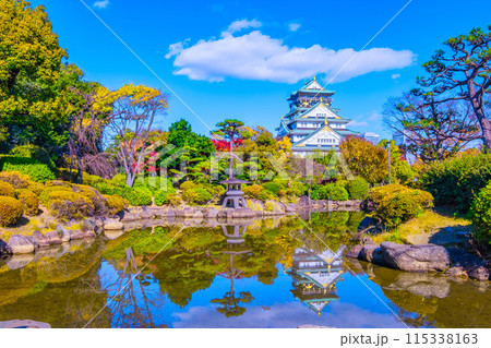 大阪城的秋葉和水鏡