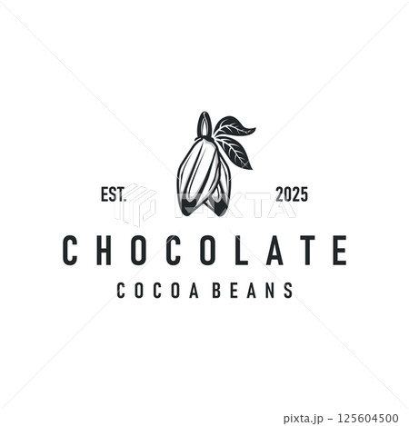 cocoa logo,cocoa bean,cocoa tree,cocoa branches and leaves,chocolate mix on white background,vintage,modern,simple,minimalist icon illustration template design vector