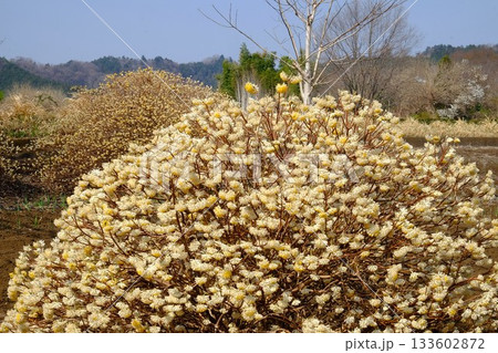 田野裡盛開的三椏花 [相模原市築井,3月]