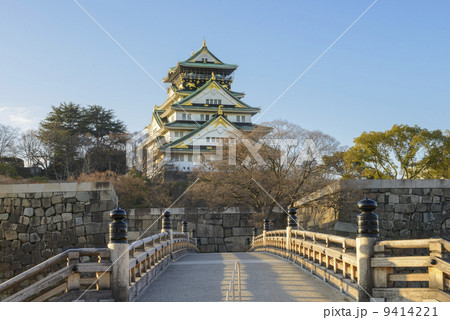 大阪城風景、橫跨內護城河的橋樑、極樂橋