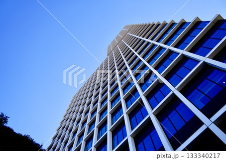 從正下方仰望中日大廈的牆壁,這是一個極具衝擊力的角度。
