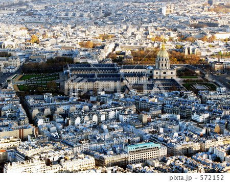 above view of Paris city with palace Les Invalides