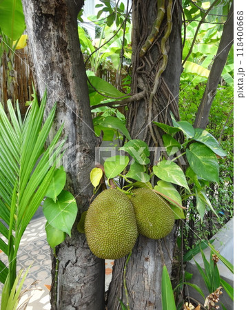 [柬埔寨] 樹上長著兩顆榴槤果(暹粒)