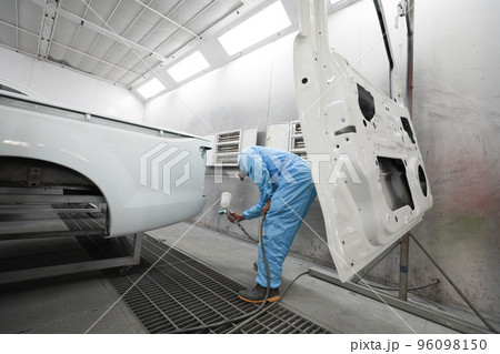 Standard auto repair shop is repairing and repainting the car after the accident.