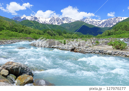 松川與北阿爾卑斯山(長野縣白馬村)
