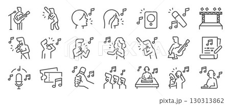 Singer icon set. It included music, musician, song, song writer, and more icons. Editable Vector Stroke.