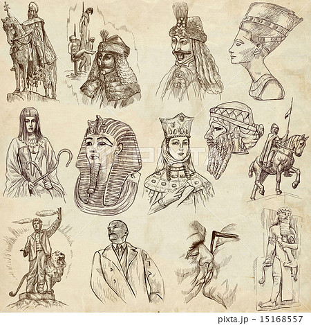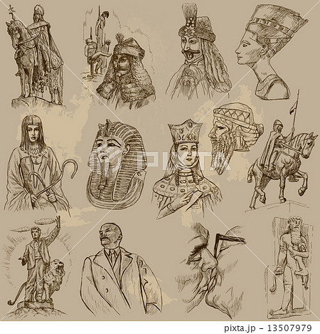 Six Polish kings portraits from banknotes isolated on white background