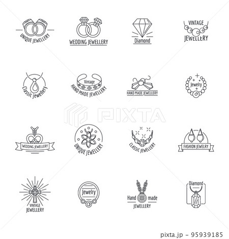 Jewellery logo necklace luxury icons set. Outline illustration of 16 jewellery logo necklace luxury vector icons for web