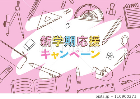 新學期支援活動橫幅_文具背景_向量插圖