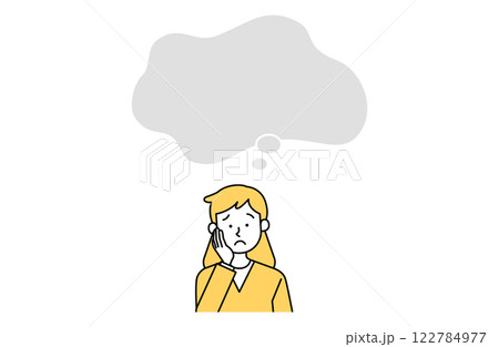 一個焦慮的女人和講話泡泡的向量插圖簡單框架複製空間框架女人老人