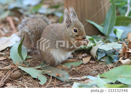 Nihonrisu,滿是泥土,從土壤中挖出的咬核桃