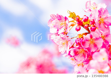 河津櫻和名次郎盛開:櫻花樹:霍亞河