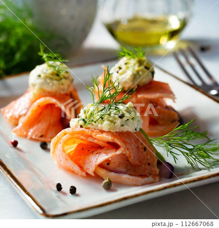生牛肉片,生牛肉片沙拉。鮭魚、鯛魚、章魚、櫻桃番茄、嫩葉和橄欖油。