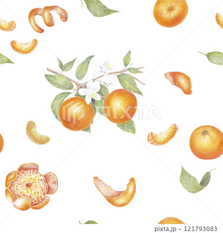Peeled mandarin watercolor. Set of mandarin fruit design elements. Ripe orange watercolor. Orange fruit vitamin. Food illustration , pattern