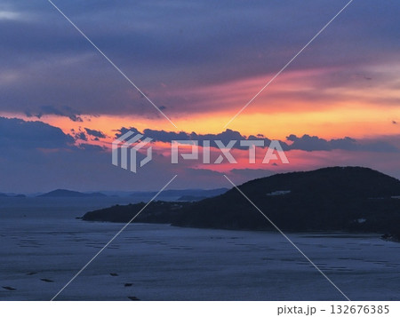 瀨戶內海流過毛茸茸的風暴,染上了朝霞的色彩