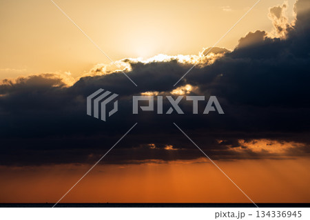 黎明時分的雲朵之美在天空中蔓延[背景素材]