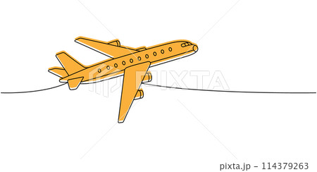 Plane, air transport one line colored continuous drawing. Different air transport continuous one line illustration. Vector minimalist illustration