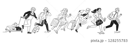Illustration of people rushing with luggage