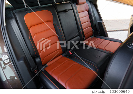 Luxury leather seats in a modern SUV with spacious interior design