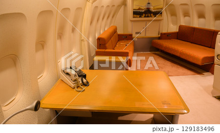 政府飛機貴賓室內的辦公桌和衛星電話