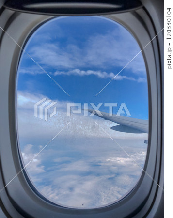 Scenery outside the window of a passenger plane, beautiful blue sky and white cloud view