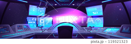 Interior of spaceship control cabin with panels