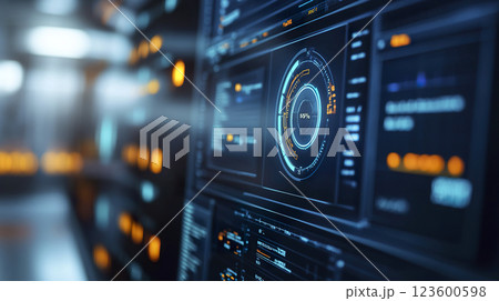 Interface of digital control panel in spaceship cockpit or command room, futuristic screens and modern dashboard. Concept of technology, hud, ui, tech interface.