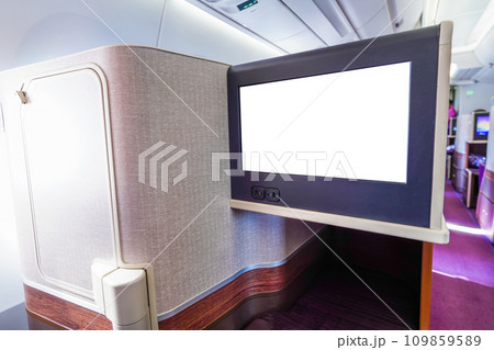 Monitor screen of business seat on cabin
