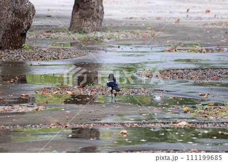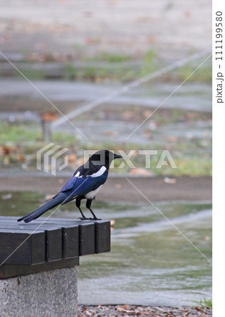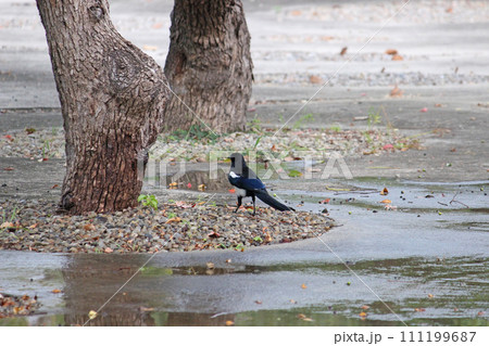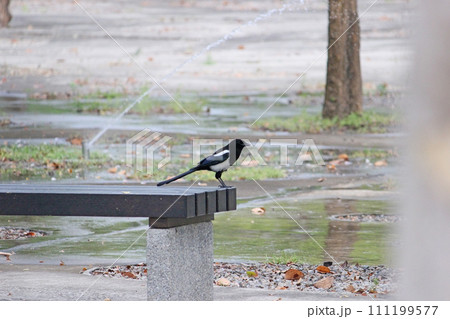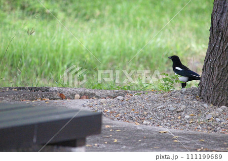 拍攝在台中中央公園裡四處跳動的喜鵲