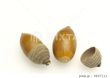 橡樹堅果(橡子,白色背景),(秋季,十月)