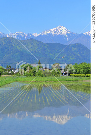 五月在安曇野鄉村和北阿爾卑斯山