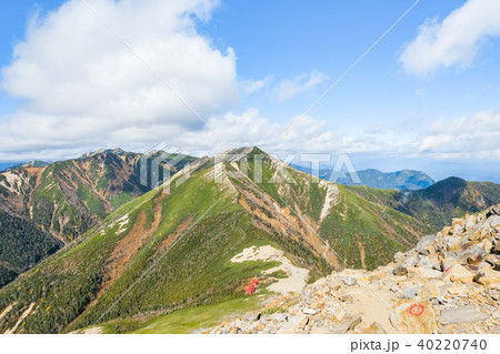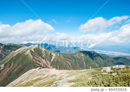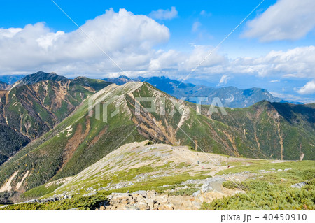 從橫多立岳的山路上看到的穗高山脈、矢里山的山脈