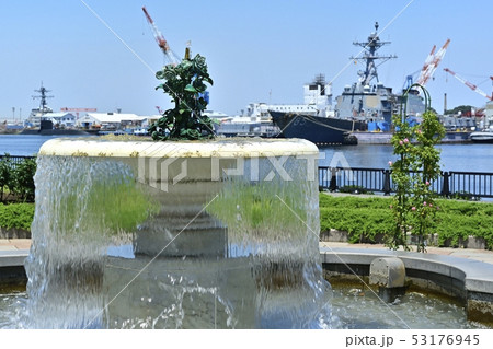 Verny公園噴泉和橫須賀港