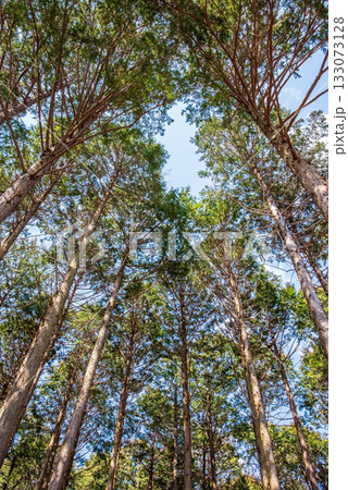 柏樹林背景下盛開的房櫻[相模原市築井,3月]