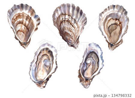 一組水彩插畫,描繪了美麗的貝殼,背景為白色,包含海洋寶藏和海螺設計元素。