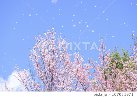 櫻花暴風雪與落下的櫻花和花瓣的插圖