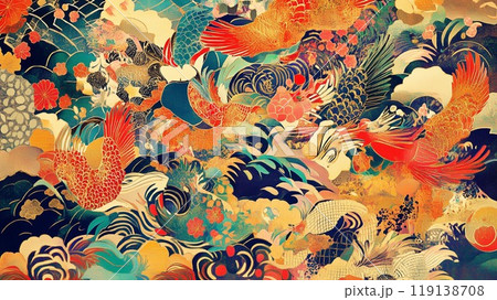 錦鯉與波浪紋之美 | 日本畫的傳統色彩與水的優雅流動