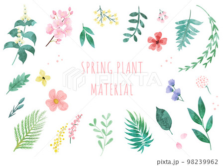 春季簡單插圖圖標集/正常/櫻花、花卉、自然、植物、動物