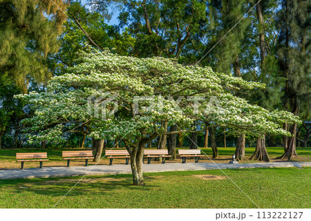The white flowers of Chinese Fringe tree(Chionanthus retusus).
