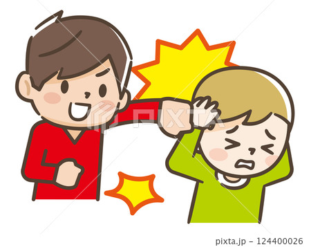 一個男孩拉著朋友的頭髮,另一個男孩哭了