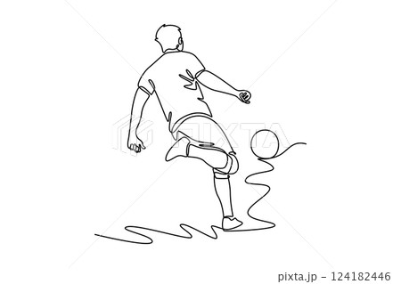 One single line drawing of young energetic football striker take a free kick shoot at the game. Soccer match sports concept. Continuous line draw design vector illustration