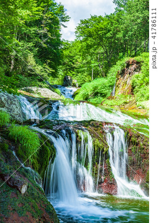 長野縣茅野市初夏的鴛鴦隱士瀑布