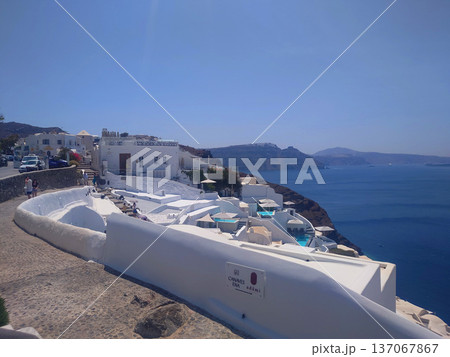 Santorini Coastal Houses Landscape View in Greece