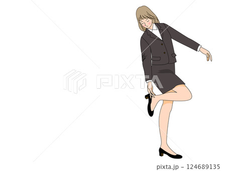 一位女商人脫鞋穿高跟鞋的插圖,全身,正面,單腳站立