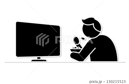 一位身著休閒服的年輕男子正在吃炸雞和米飯(上半身)