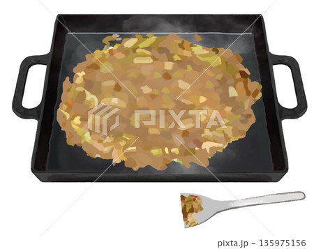 學校午餐工作人員在煎鍋裡烹飪的插圖(廚師,烹飪,廚房)
