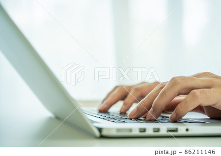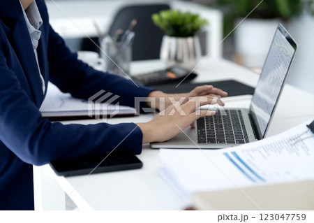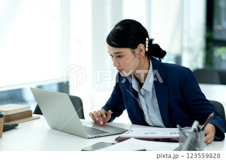 Young business woman is typing data using a computer to do business
