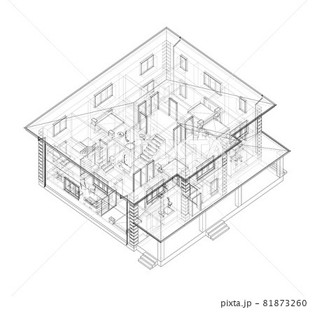 Residential building technical drawing. Vector