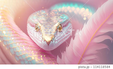 一條包裹著閃光的蛇,色彩柔和,充滿幻想氛圍