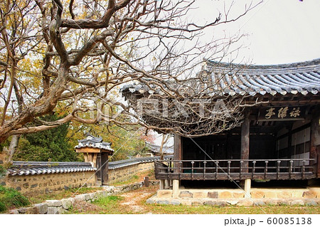 田園風光,老院子,有瓷磚和樹木的房子,院子
